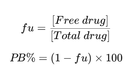따라서 단백질 결합 비율이 높으면 자유 약물 농도가 낮아져 약효 발현 속도와 분포 용적(Vd)이 제한되고, 반대로 결합 비율이 낮으면 빠른 작용과 짧은 지속성을 나타낼 수 있습니다.